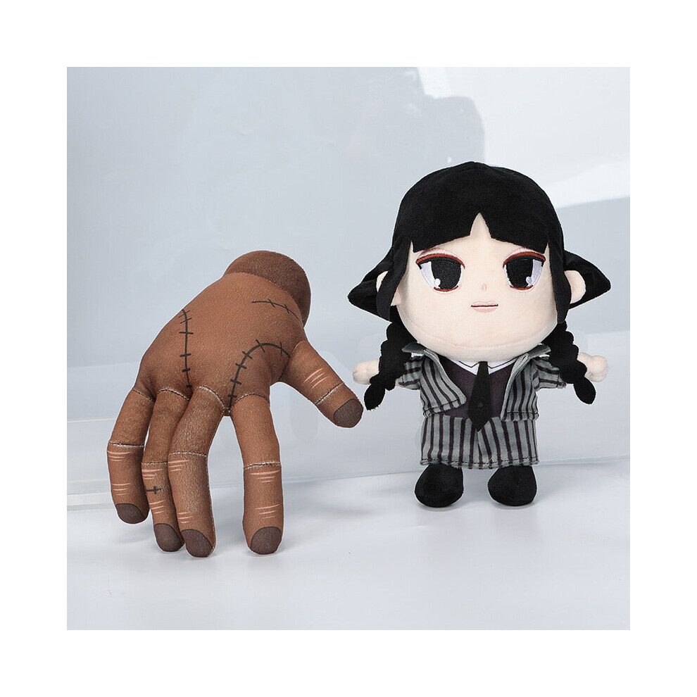 (2PCS) Wednesday Addams Stuffed Wednesday and Thing Toy Plush Toy Doll Soft Gothic Wednesday Addams Family Model Realistic Scary Decoration Gift