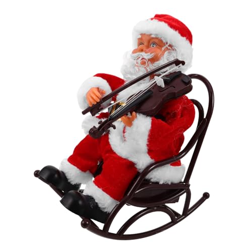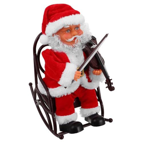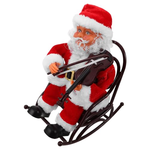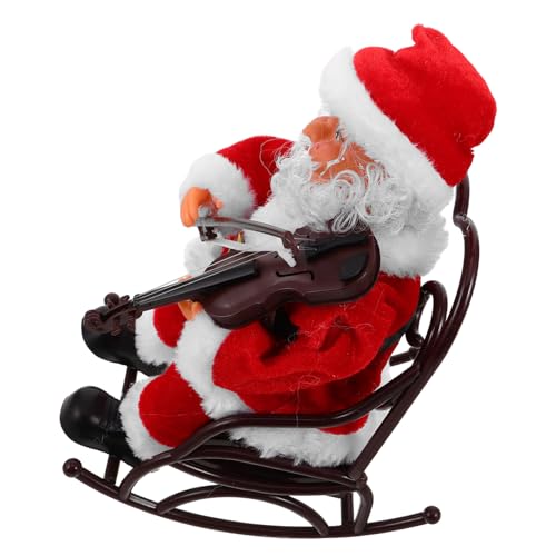 FRCOLOR Electric Musical Santa Claus Doll in Rocking Wheelchair with Violin Colorful Christmas for Holiday Play Party Decoration and Festive Home Display