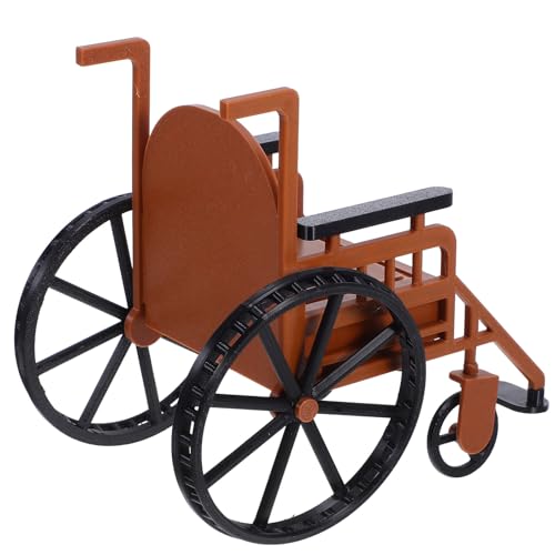JOINPAYA Miniature Dollhouse Wheelchair, Brown Medical Wheelchair Figurine for Doll Accessories, Action Figure Wheel Chair Model for Role Playing and Dollhouse Furniture