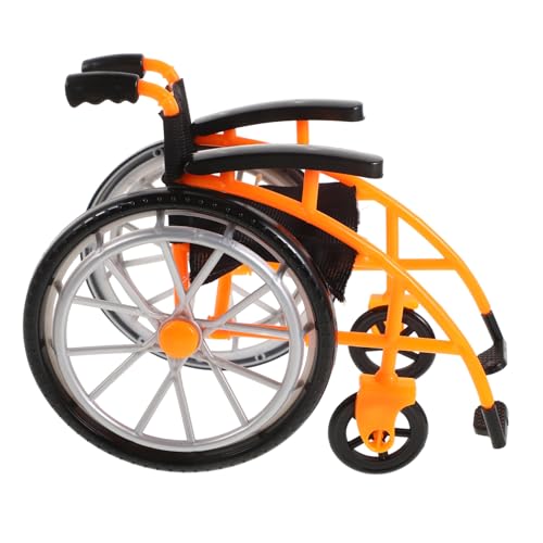 TOYANDONA 1 set of Doll Wheelchair and Crutches Playset Orange Mini Foldable Model Miniature Wheelchair Crutch Ornaments for Kids Pretend Play