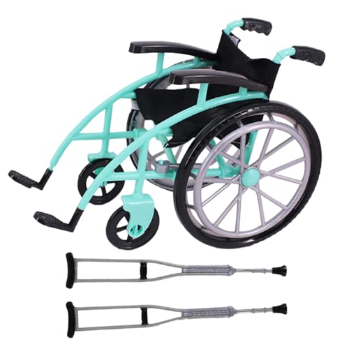 Yardwe Doll Wheelchair And Crutches Mini Wheelchair Toy Miniature Crutch Model Playset Dolls House Accessories for Kids Pretend Play Toy, Green