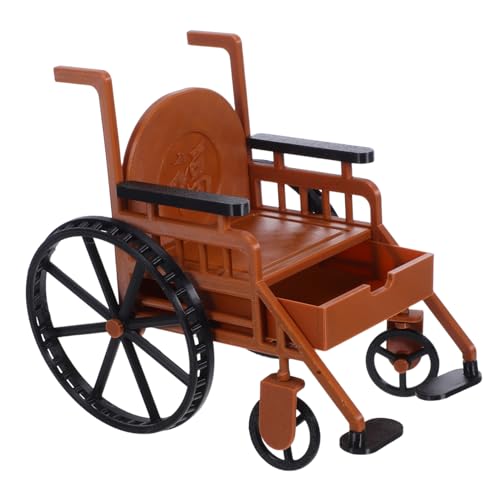 WHAMVOX Miniature Wheelchair Dollhouse Furniture Brown Mini Medical Model for Bjd Dolls Role Play Collectors Detailed Accessory for Imaginative Storytelling and Doll Photography Props