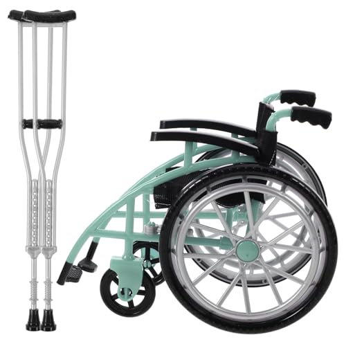DOITOOL Mini Wheelchair Crutch Props Realistic Doll Wheelchair Figurine Decorative Miniature Crutch Dollhouse Accessory for Playset (green)