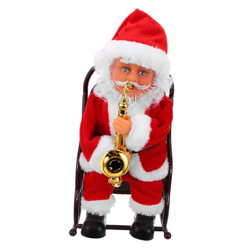 SUPVOX Electric Musical Santa Claus Sitting Rocking Wheelchair with Saxophone Interactive Xmas Doll Ornament for Holiday Decor and Party Play