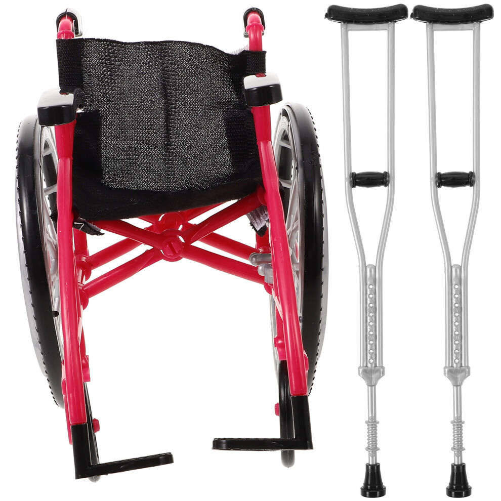 Yardwe Doll Wheelchair And Crutches Mini Wheelchair Toy Miniature Crutch Model