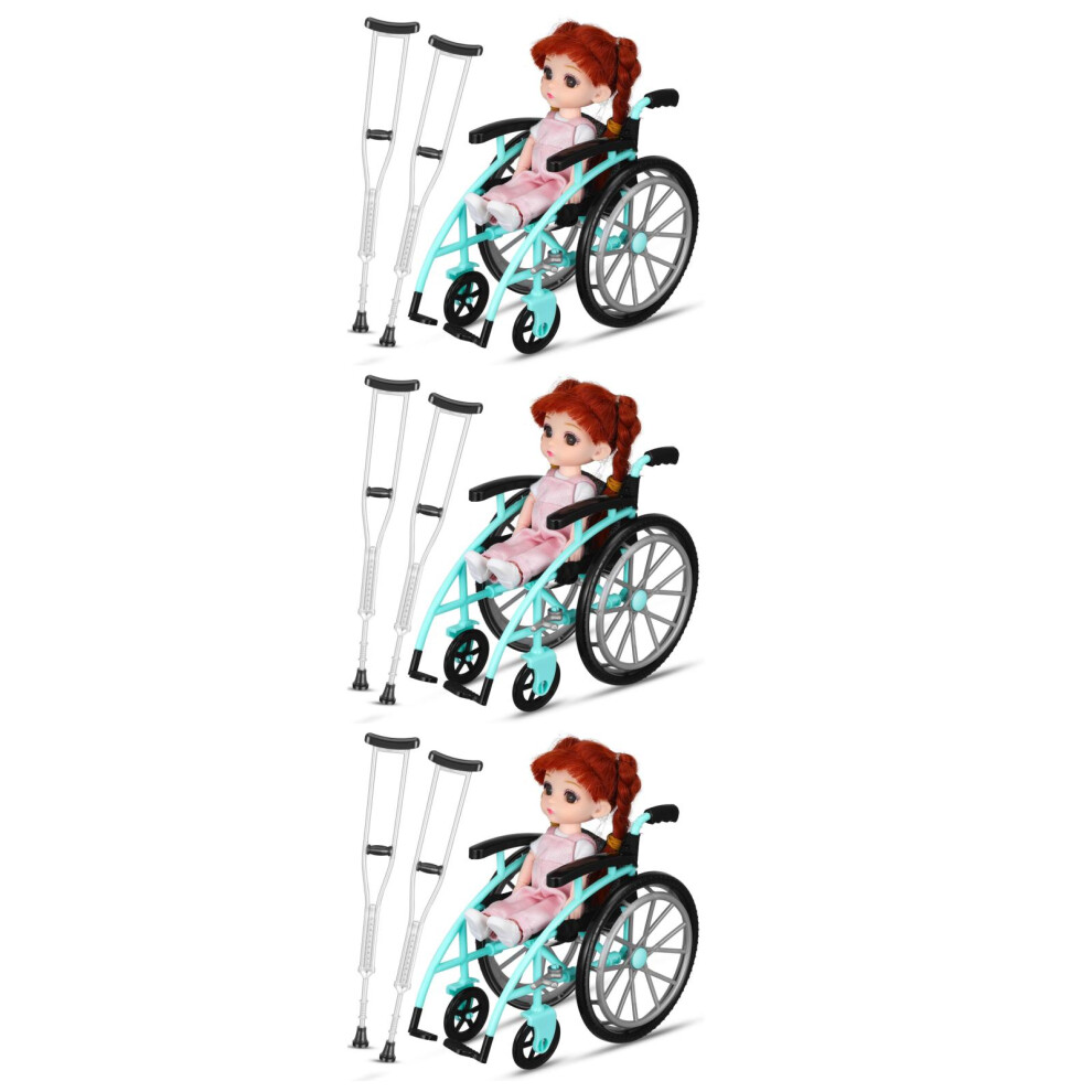 3Sets Decorative Miniature Doll Wheelchair and Crutch Models Set