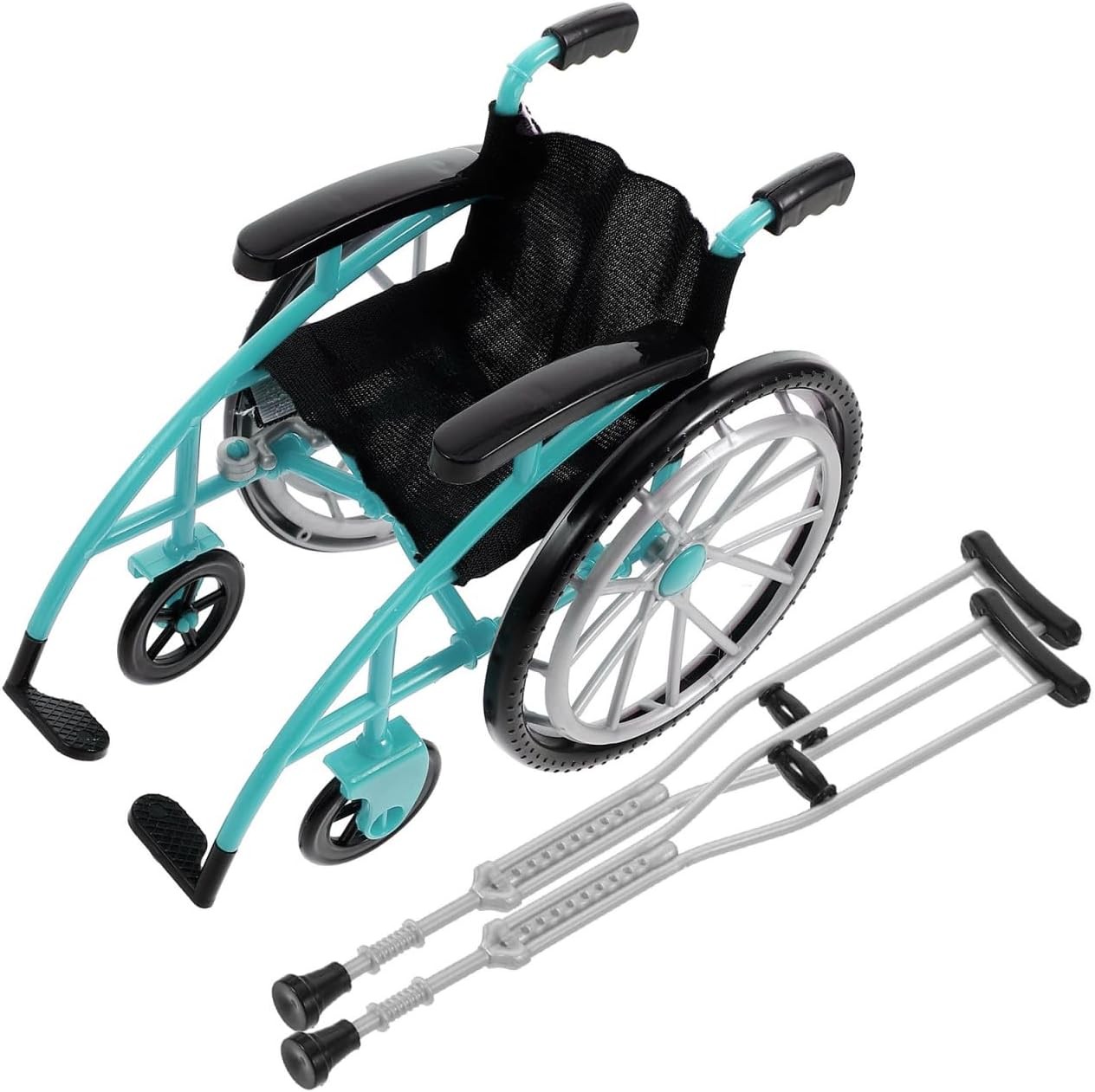 NASSMOSSE 1 Set Doll Wheelchair Crutch Props Realistic Miniature Toy Wheelchair for Playset Dollhouse Accessory