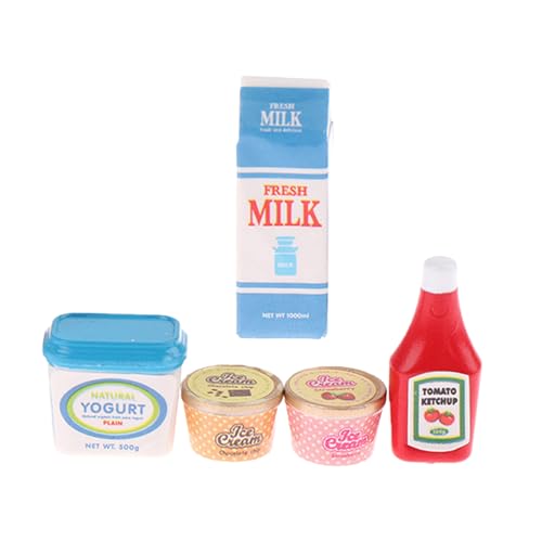 yanzunlrn Miniature Play Food Figurine for Doll House with Realistic Ketchup Ice Cream Yogurt Resin Accessories Safe Scene Props Doll House Miniature Food