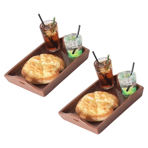 XAGMODSHN Simulation Street Food Breakfast Miniatures with Service Tray Soymilk Fried Bread Stick Figurine Doll House Accessories Doll House Food Model Figure