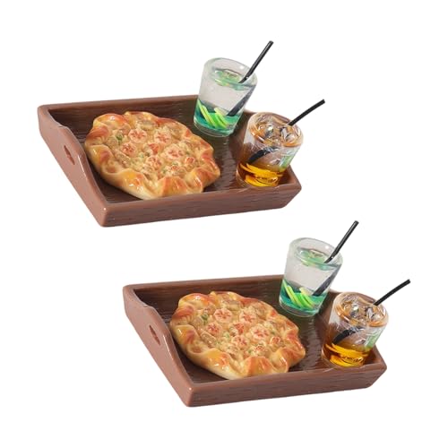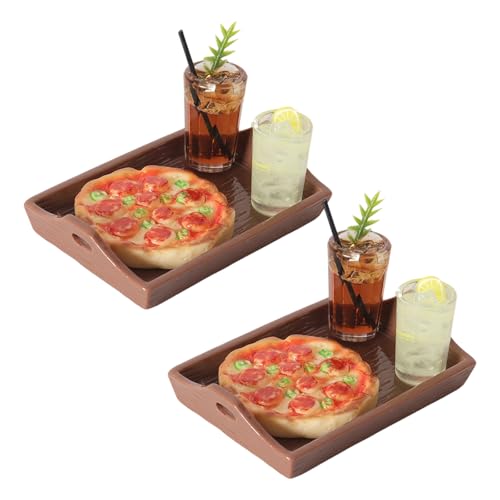 MZRAN Highly Detailed Miniature Cheese Pizza and Beverage Food Props with Life Like Design for Doll House Arrangement Pack of 2 Doll House Accessories Food Props