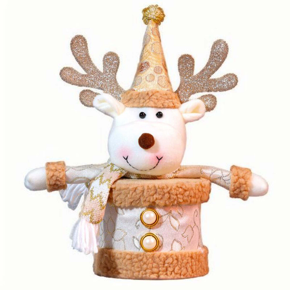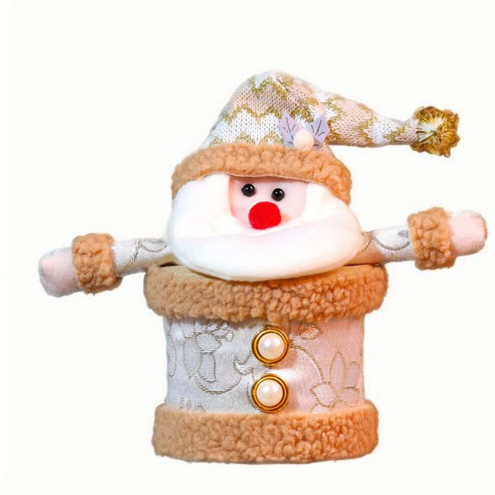 (28cm, khaki) Christmas Eve Apple Present Box with Stuffed Santa Claus/Snowman/Reindeer Doll Decor Food Storage Party Ornament