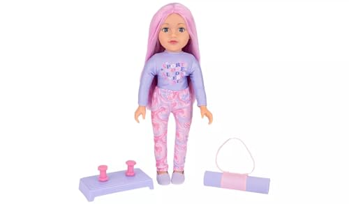 AIDNI Love To Move 18-Inch Fashion Doll with Pink Hair, Lavender Sports Outfit, Marble Print Leggings and Display Stand