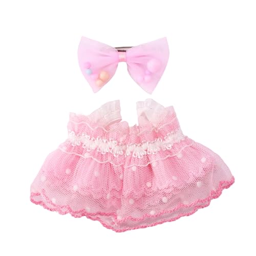 17cm Plush Doll Clothes Set, Pink Kawaii Dress with Bow Hair Clip Cute Outfit for Display Play or Collection Fashion Accessories for Stuffed Dolls & Mini Figures