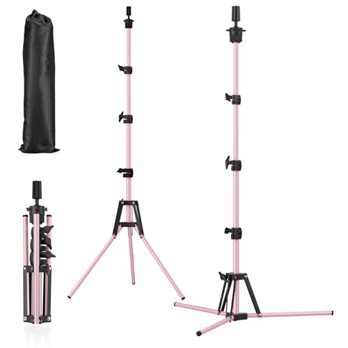 Fernlandia Wig Stand Mannequin Head Stand with Carry Bag, 20"/50cm- 63"/160cm Wig Tripod Height Adjustment, Upgraded Reinforced Stainless Steel, For Manikin Head,Canvas Foam Head,Hair Doll Head(Pink)