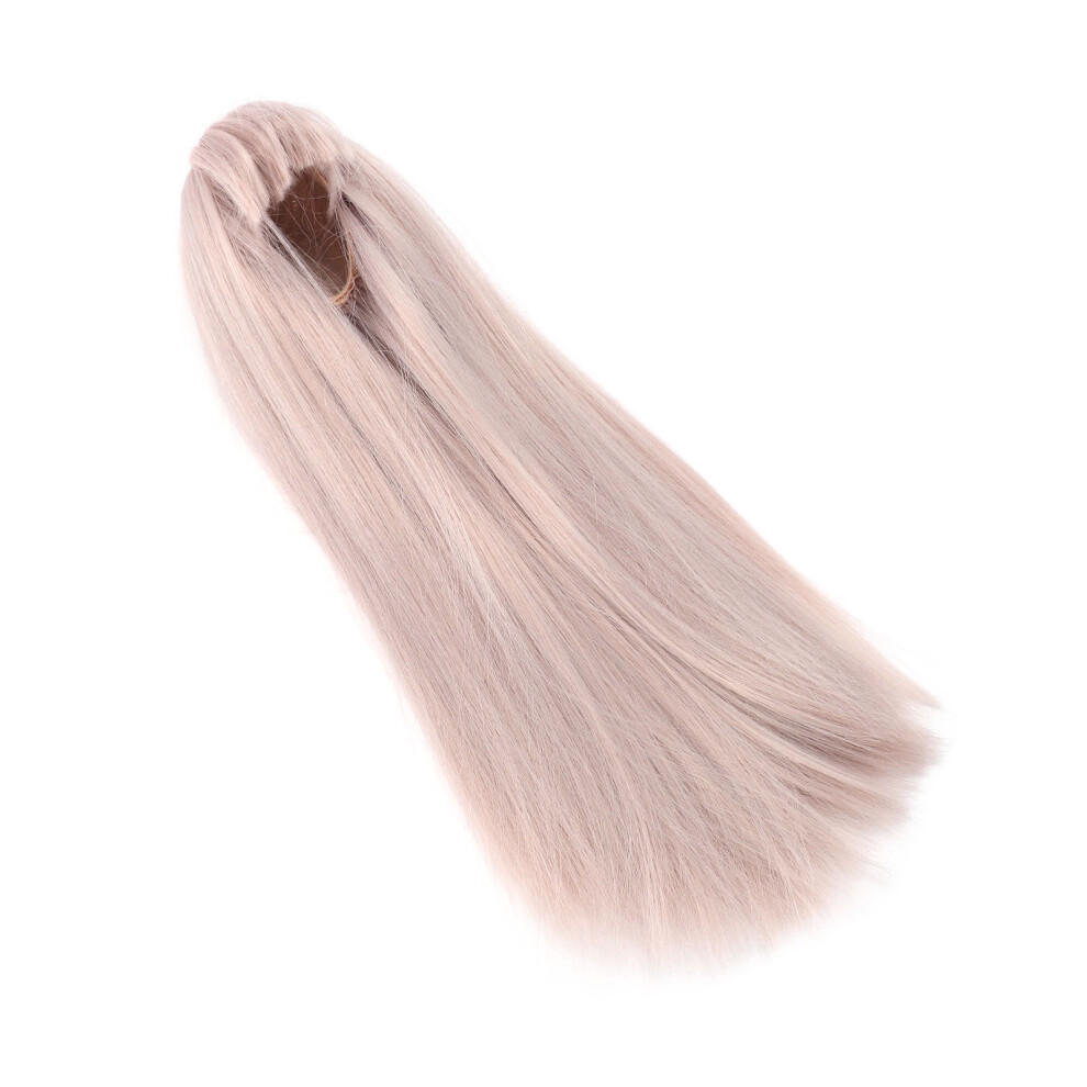 Doll Long Straight Wig with Bangs Realistic 1/4 Straight Bang Doll Wigs Synthetic Hair for 18.5‑21cm Head Circumference Light Gray Pink
