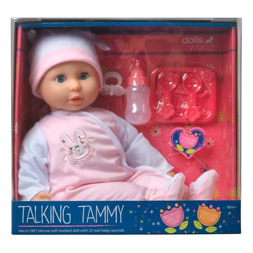 Dolls World from Peterkin | Talking Tammy Doll | 46cm (18") baby doll with 21 baby sounds, deluxe outfit and feeding accessories | Dolls & Accessories | Ages 18m+
