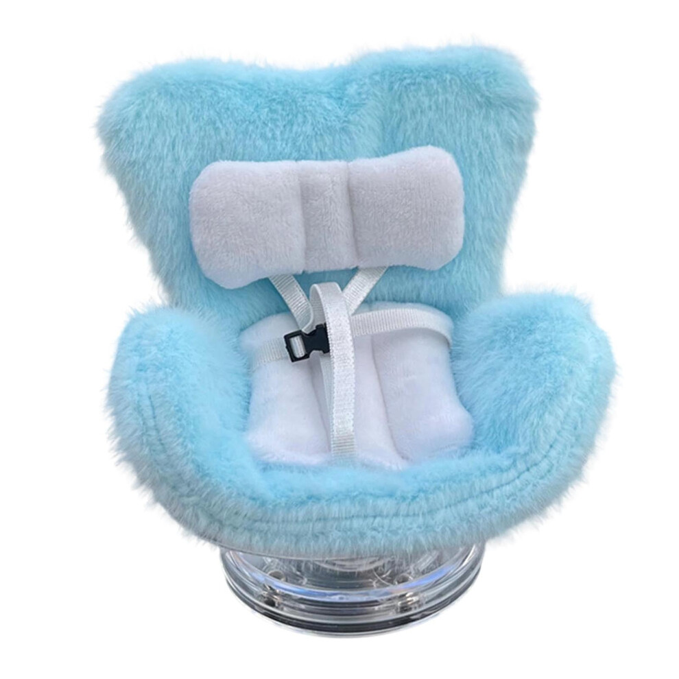 Compatible with Labubu Dolls Mini Car Seat – Soft Furry Cushion, Air Vent Clip & Detachable Desktop Stand | Cute & Functional Car & Desk Ornament for Doll Collectors, Kids & Women (blue)