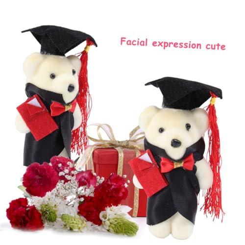 TOYANDONA 2pcs Graduation Plush Bear Bouquet with Black Red Paper Soft Doctor Bear Dolls for Graduation Party Supplies and Photo Props