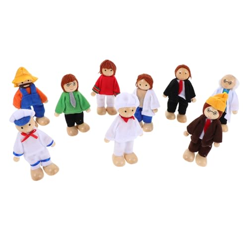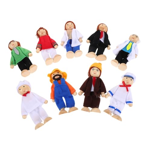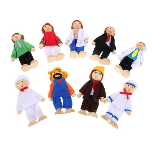 BESPORTBLE 9pcs Wooden Dollhouse Family Dolls Miniature Flexible Pretend Play Figures Poseable Construction Worker Doctor & Chef Figures for Storytelling Pretend Play