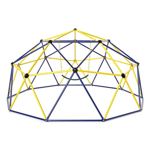 10FT Dome Climber, Kids Outdoor Jungle Gym Climbing Dome with Swing Upgrade Monkey Bar Supports 800 LBS, Toddlers Climbing Frame Playground Center Equipment Structure (Yellow)
