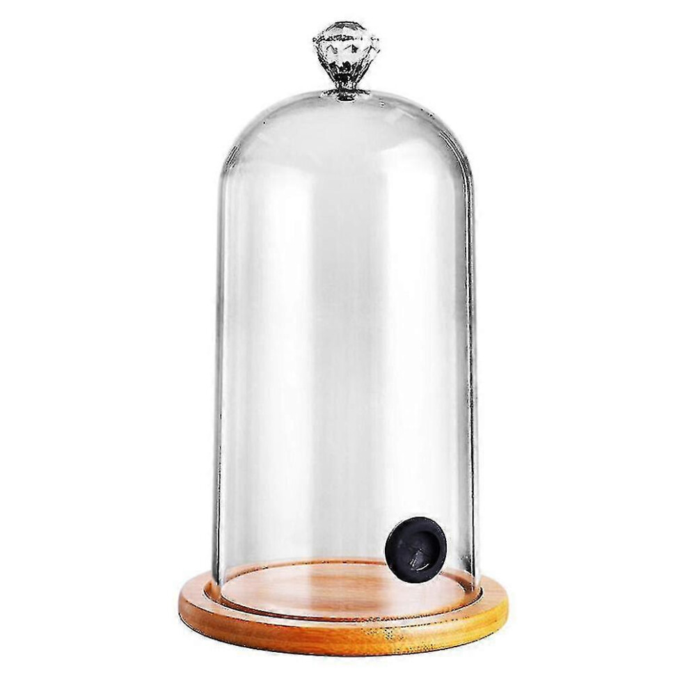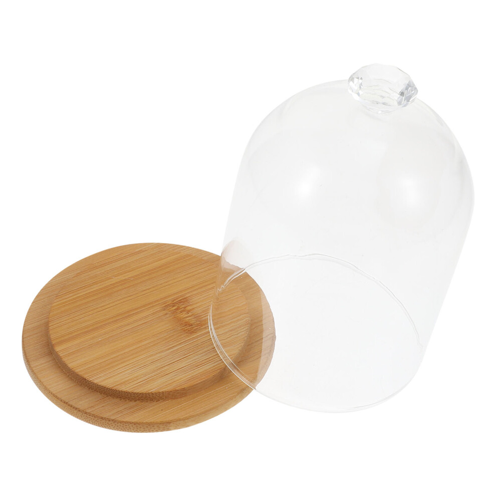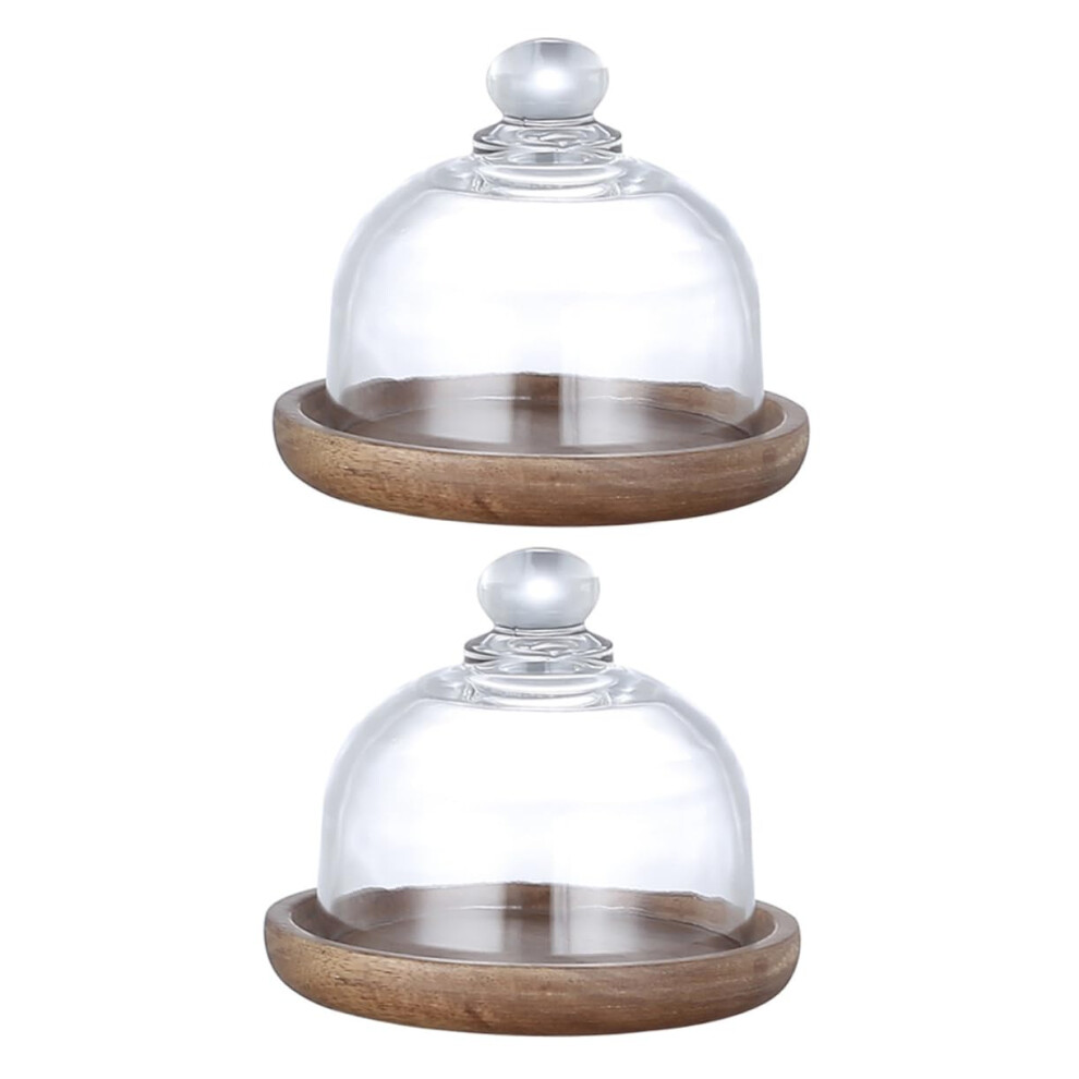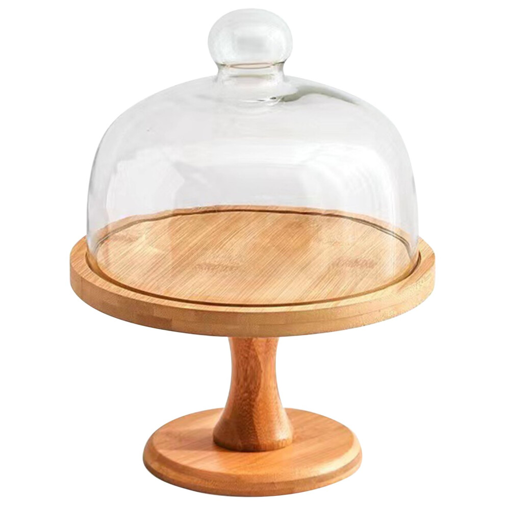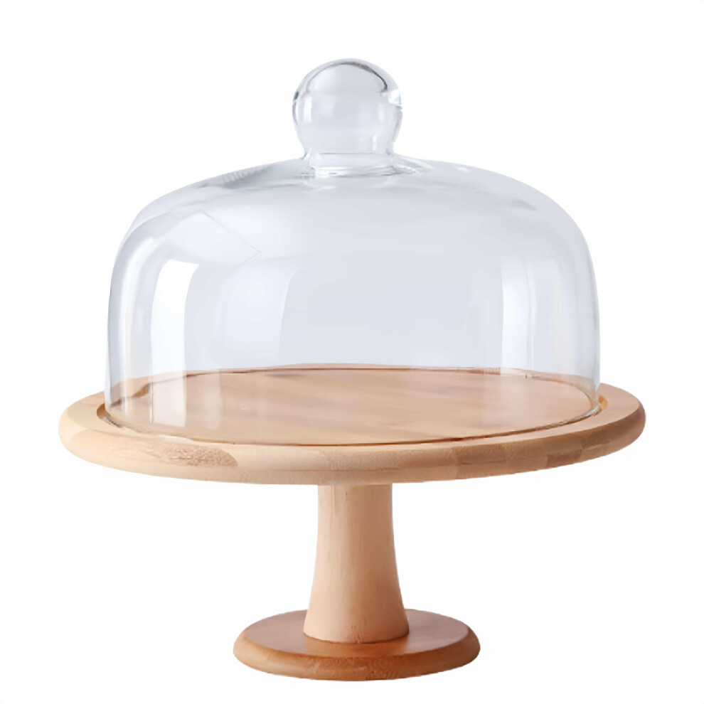 Glass Dome Cake Holder with Wooden Tray Mini Round Server for Dessert