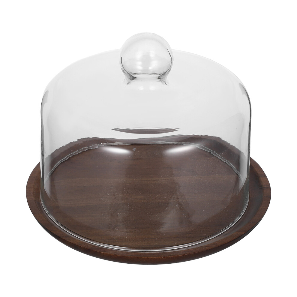 1 Set Glass Dome with Wood Tray Cake Display for Pastry Dessert