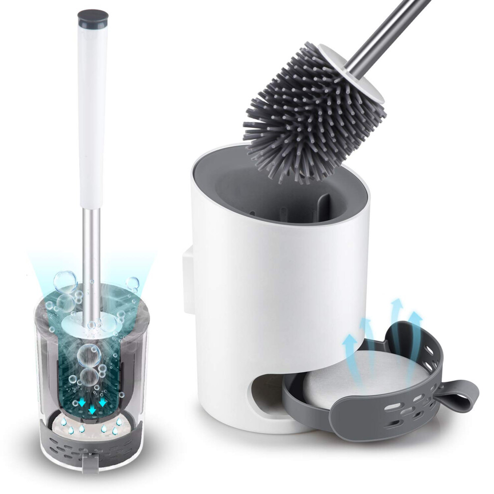 Toilet Brush and Holder Set, Domi-patrol 2 Pack Toilet Bowl Brush and Holder for Bathroom (White (1pcs))