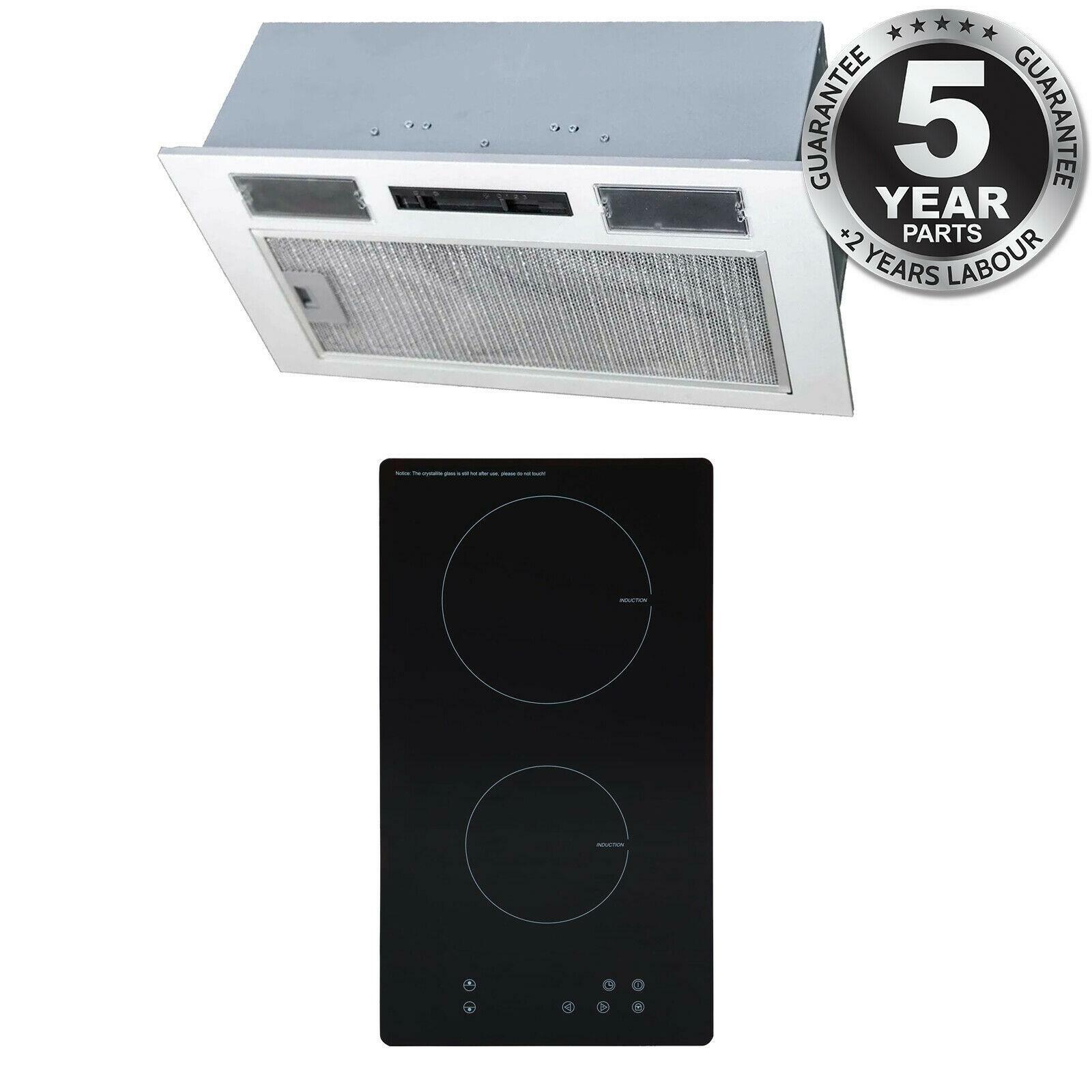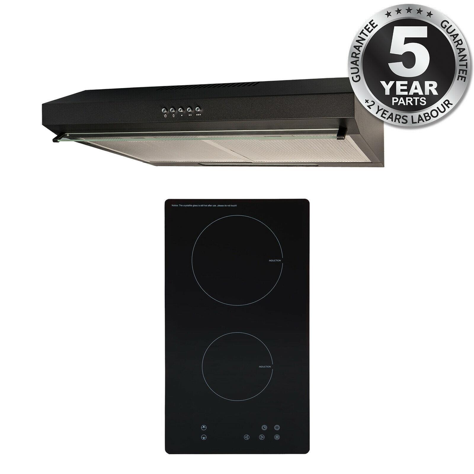 SIA 30cm 2 Zone Black Electric Domino Induction Hob & 60cm Visor Cooker Hood Fan