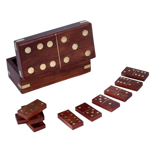 THE Unltd India Dominoes Set for Adults, Double 6 Domino Set | Traditional Travel Size Classic Board Game | 28 Dominos Pieces with Luxury Wood Box with Brass Inlay - Unique Gift for Christmas