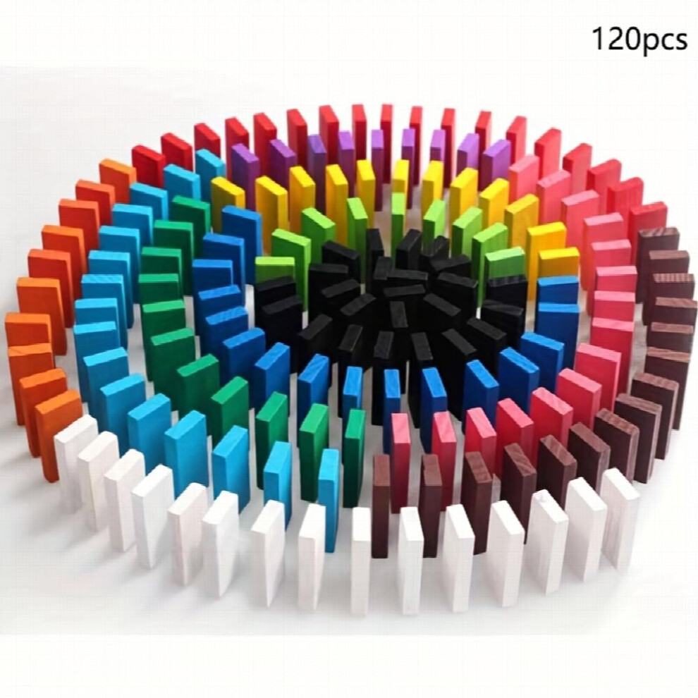 Wooden Domino Building Blocks Set Game Educational Toys For Kids Domino Race Toy Game 120Pcs