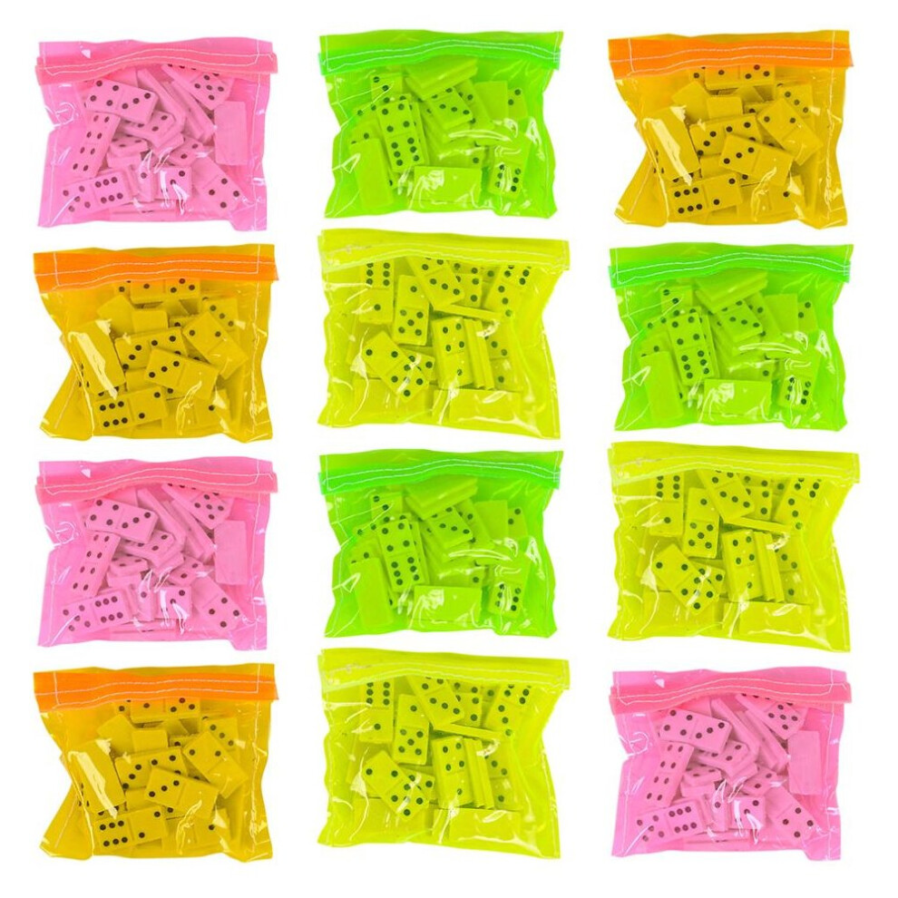 ArtCreativity Domino Game Set - Pack of 12 - Each Domino Set Includes 28 Pieces Per Neon Pink Yellow Green and Orange Bags - Great School Carnival