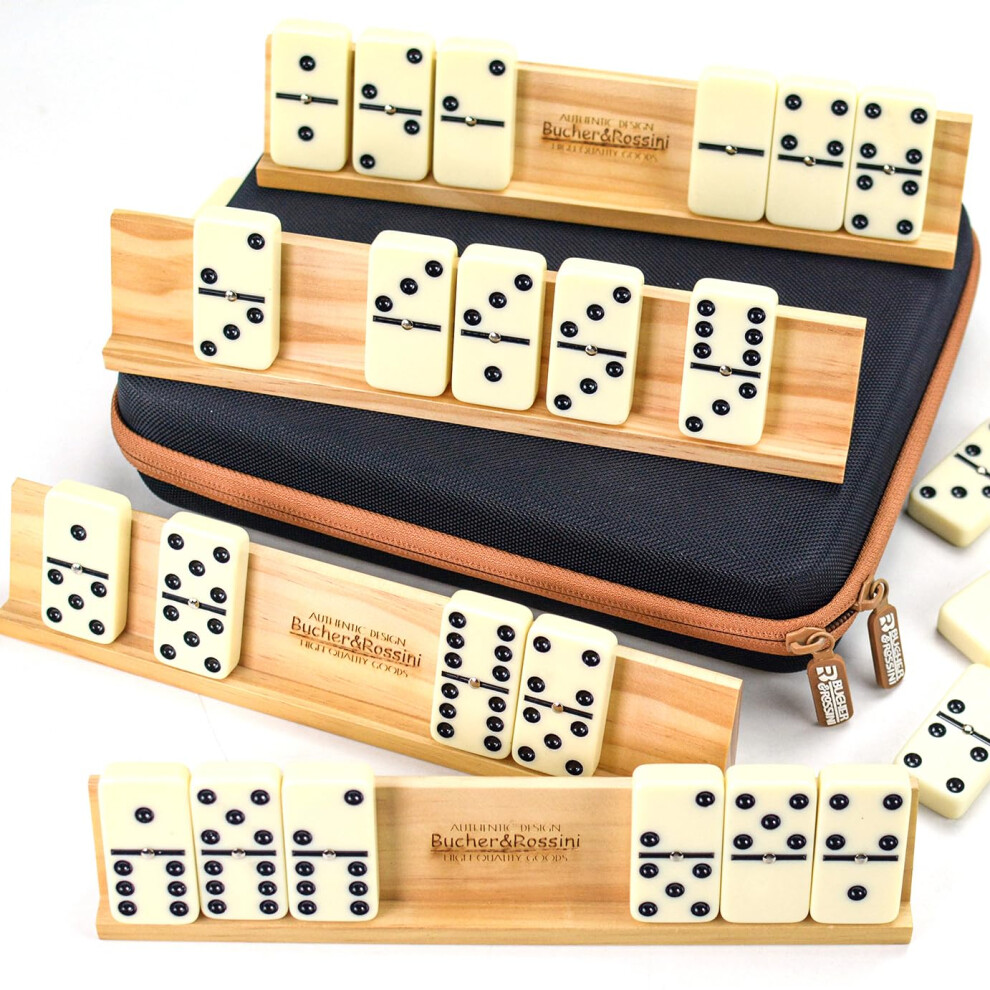 Domino Set Dominoes Family Game Holder Stand Tray Pack of 4 Gift For Him or Her