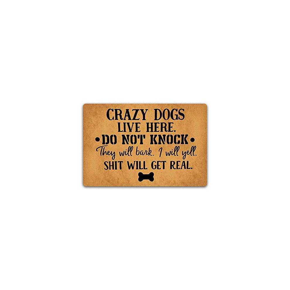 Funny Crazy Dogs Live Here Don't Knock They Will Bark I Will Yell Will Get Real Floor Mat Rug Non-Slip Entrance Indoor Outdoor Bathroom Kitchen Home