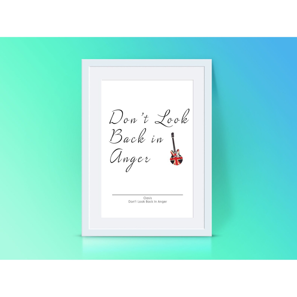 Poster Oasis Print - Don't Look Back in Anger with Guitar Music Lyrics Wall Art Home Decor Picture 16x20" or 20x20 inch