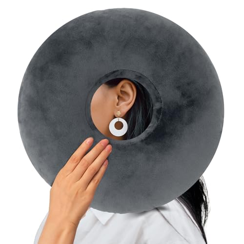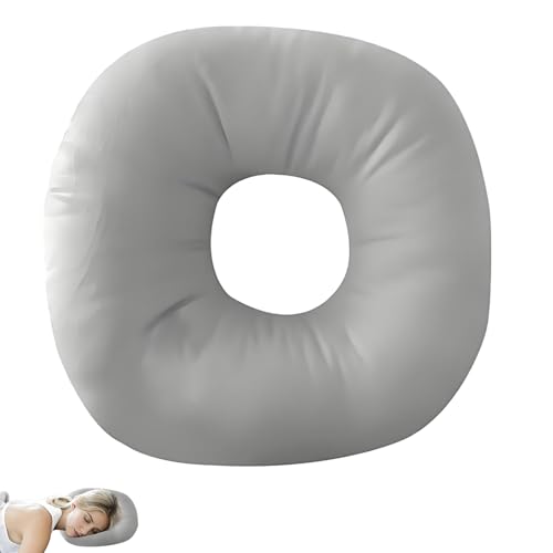 Syylqyr 1 PC Ear Piercing Pillows, Donut Pillow for Ear Pillow with Hole for Ears Doughnut Pillows for Side Sleepers Classroom Office Library Airplane (Light Grey)