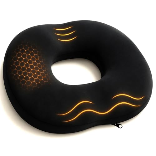 ZHOOGE Donut Pillow Donut Cushion Chair Seat Cushion - The Memory Foam Firm Coccyx Pad You Need for Comfort During Long Sitting at Office Chairs, Gaming & Car Seats!(A-Black, Standard)