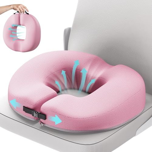 Benazcap Donut Cushion for Hemorrhoids, Coccyx Cushion for Tailbone Pain Relief, Donut Pillow, Memory Foam Seat Cushion by Ergonomic for Sores, Sciatica, Pink