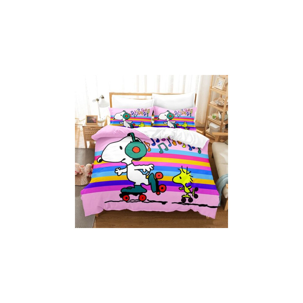(Style02, UK DOUBLE 200x200cm) Snoopy Cartoon Doona Duvet Cover Pillowcase Bedding Set Single Double KING UK#@