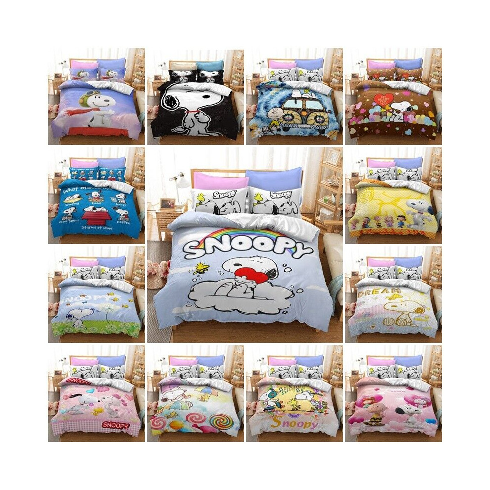 (Style13, UK DOUBLE 200x200cm) Snoopy Cartoon Doona Duvet Cover Pillowcase Bedding Set Single Double KING UK#@