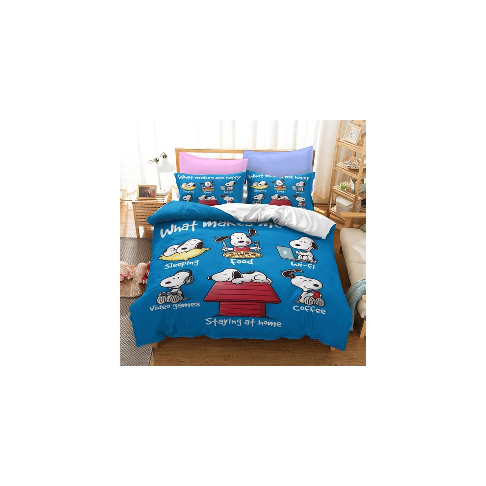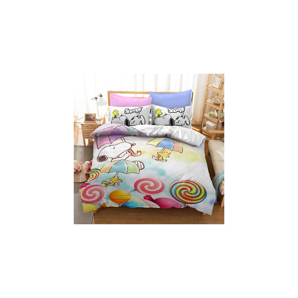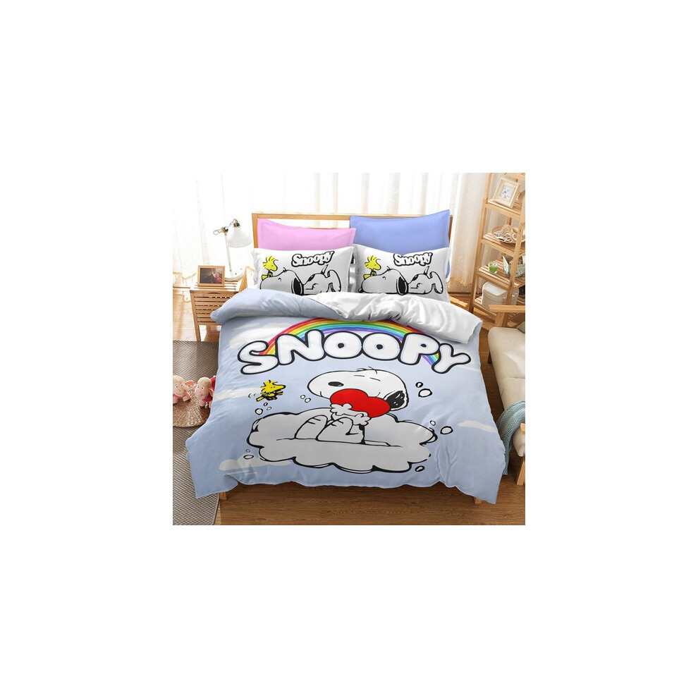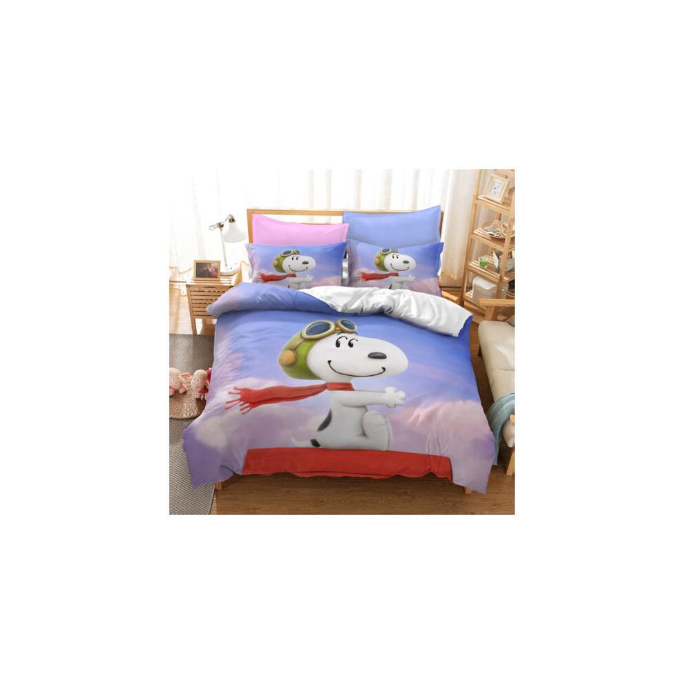 (Style03, UK DOUBLE 200x200cm) Snoopy Cartoon Doona Duvet Cover Pillowcase Bedding Set Single Double KING UK#@