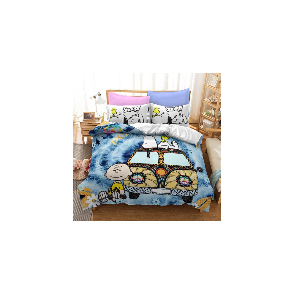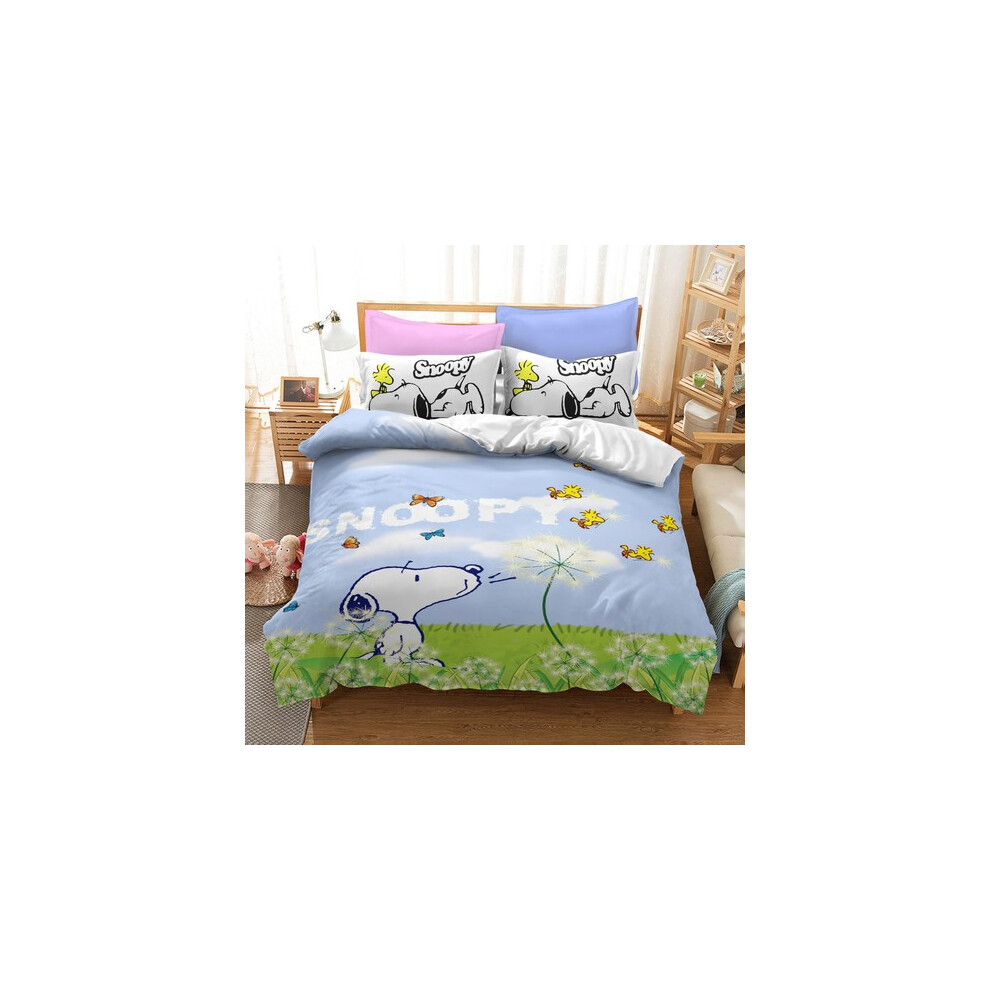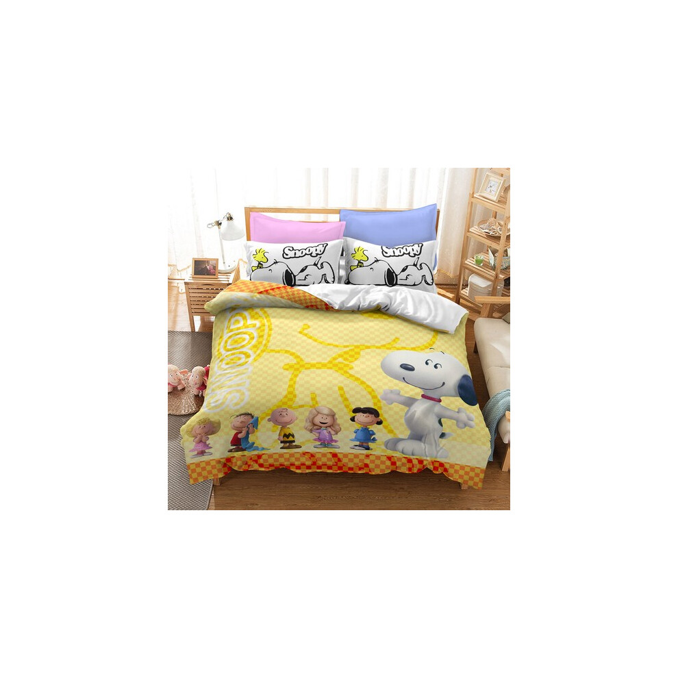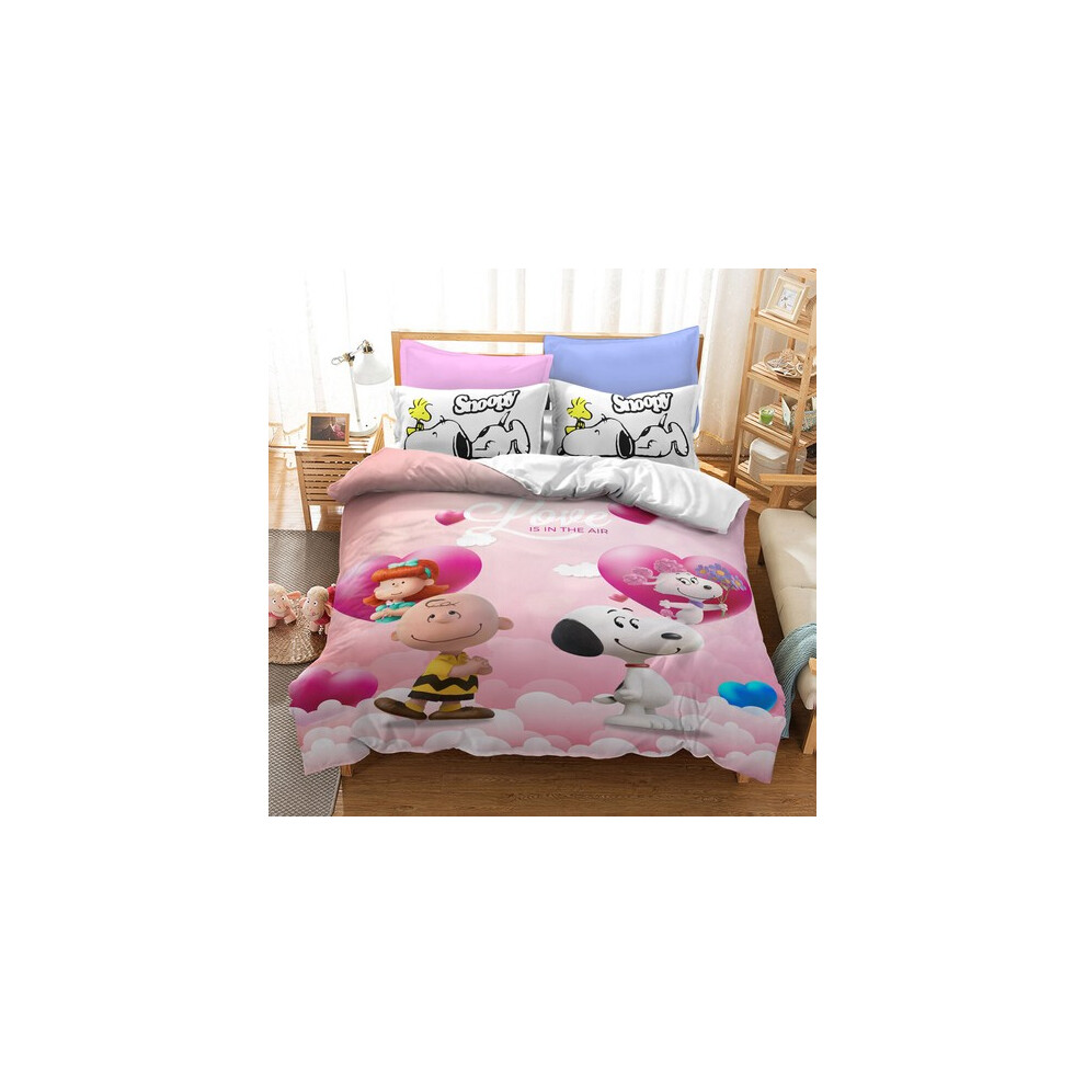 (Style03, UK DOUBLE 200x200cm) Snoopy Cartoon Doona Duvet Cover Pillowcase Bedding Set Single Double KING UK#@