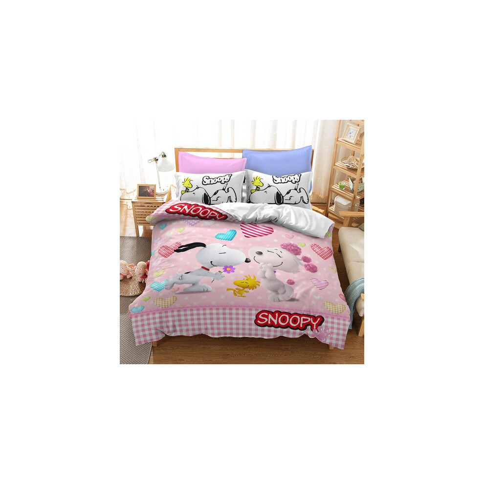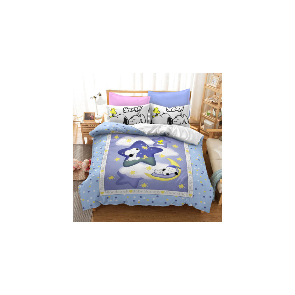 (Style04, UK DOUBLE 200x200cm) Snoopy Cartoon Doona Duvet Cover Pillowcase Bedding Set Single Double KING UK#@