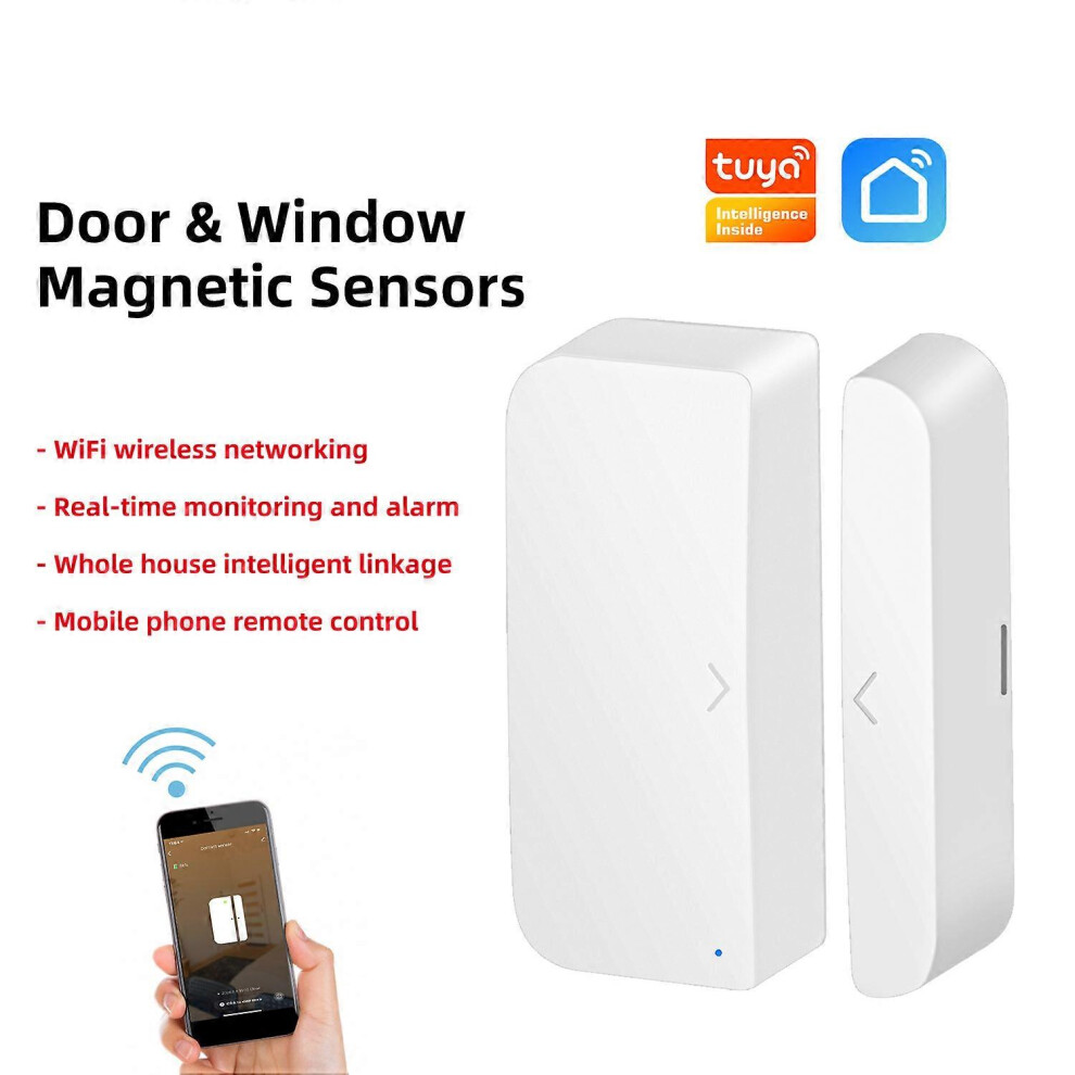 (As show, One size) Tuya Wifi Door Sensors Alarms Contact Wireless Door Window Magnet Entry Detector Sensor For Your Home Security