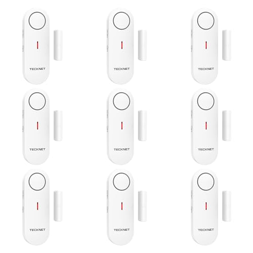 TECKNET Door Alarm Sensor, Mini Window Alarm Sensors, Door Sensor Alarm for Home Security Systems with Quick Loud 100dB Ring Alarm, Wireless Burglar Alarms for House, Shop, Office, Garage (9 PCS)
