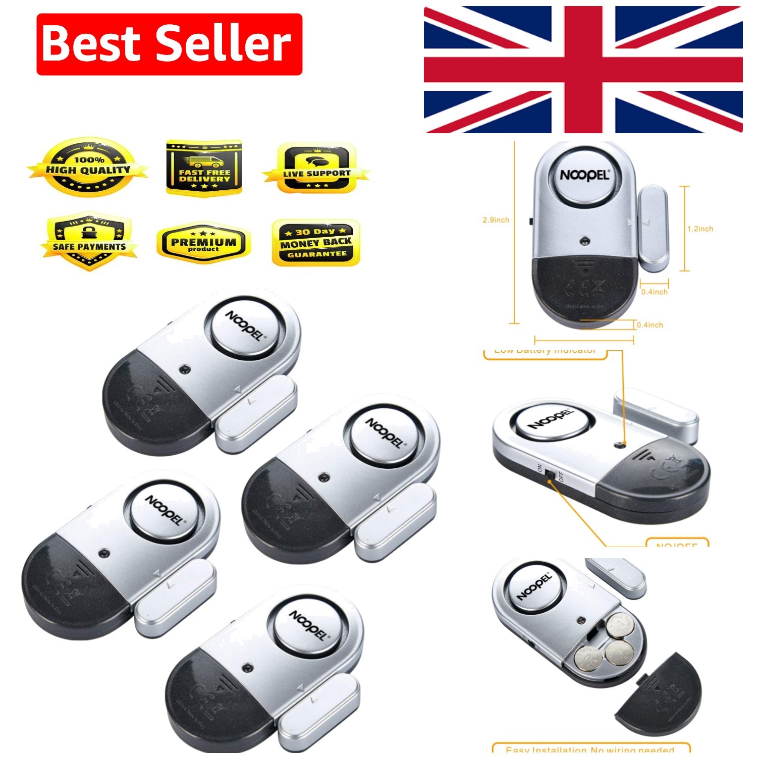 4 WINDOW & DOOR BURGLAR INTRUDER ALARMS WIRELESS SENSOR