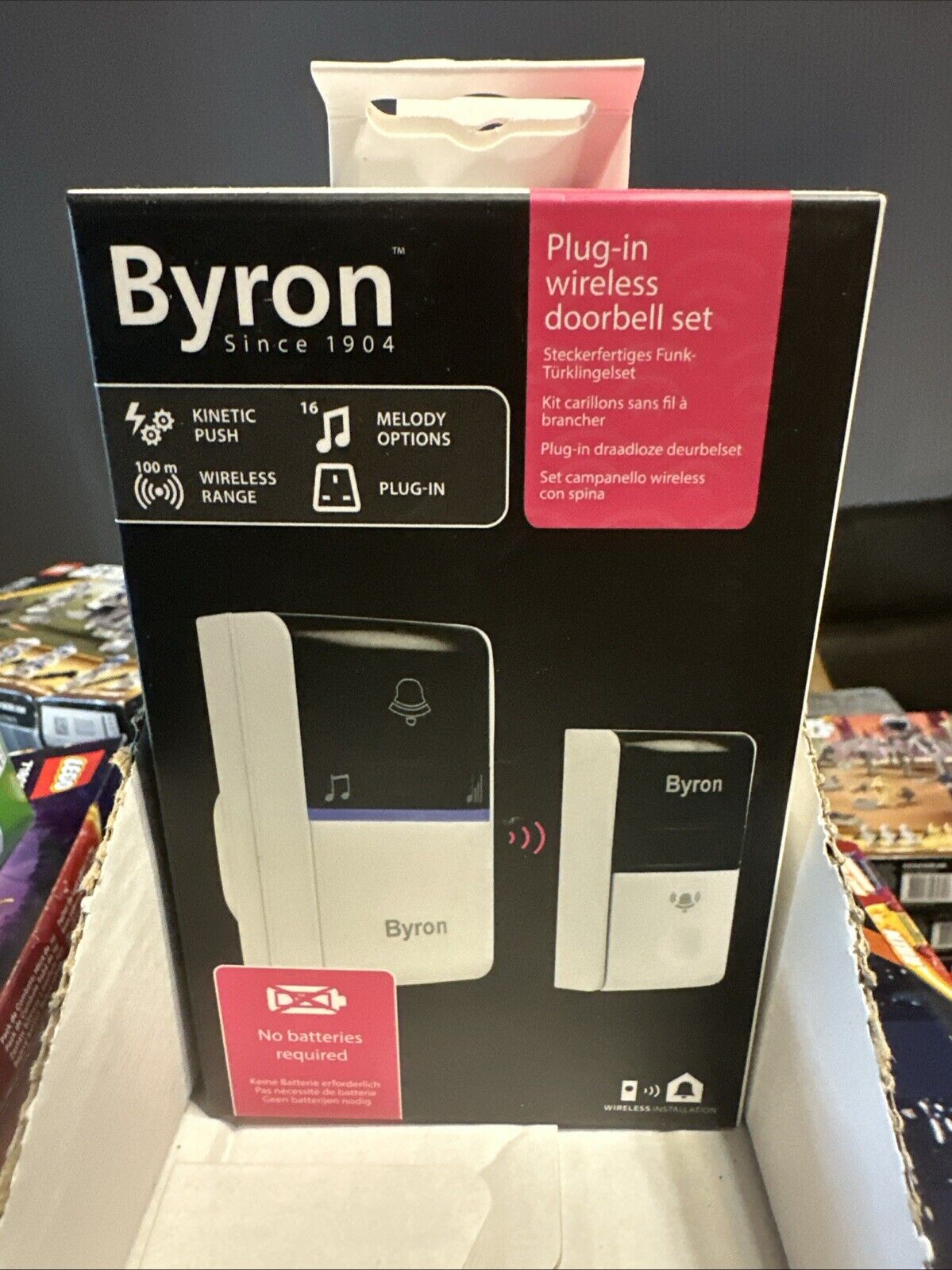 BYRON DBY-23612BS Plug-in Wireless Doorbell Set Door Bell Kinetic Push