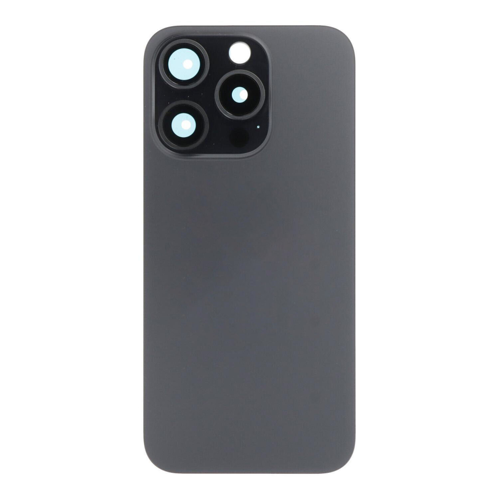 Glass Back Compatible With iPhone 15 Pro Black Titanium Battery Door Camera Lens Bezel Magnetism Ring + Metal Plate Plain Without Logo