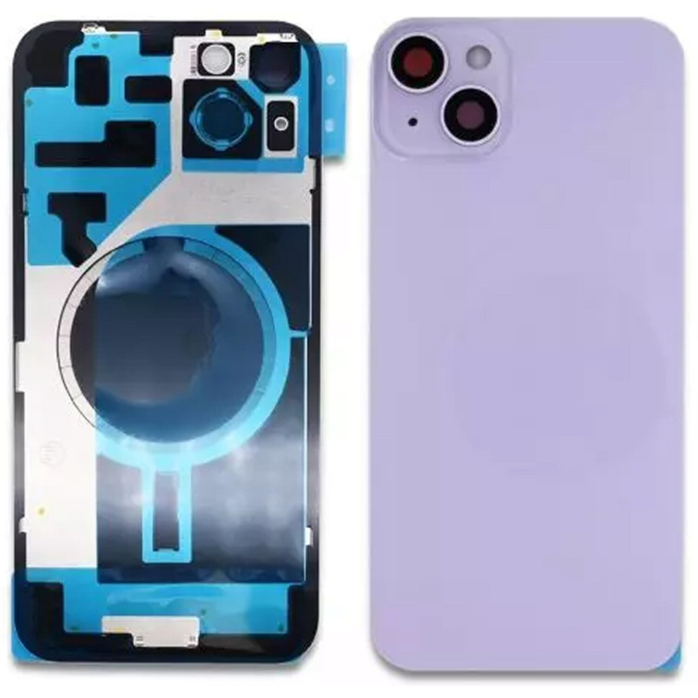 Glass Back Compatible With iPhone 14 Plus Purple Battery Door Camera Lens Bezel Magnetism Ring + Metal Plate Plain Without Logo