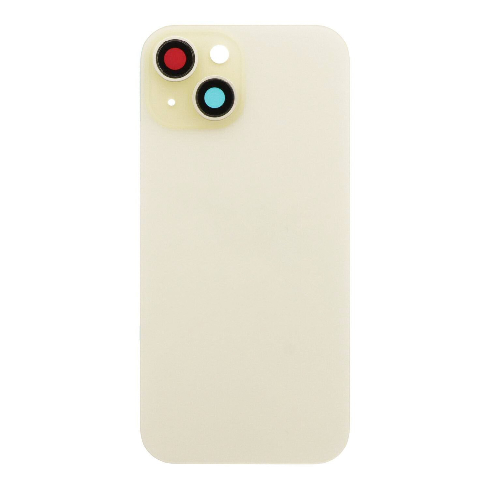 Glass Back Compatible With iPhone 15 Plus Yellow Battery Door Camera Lens Bezel Magnetism Ring + Metal Plate Plain Without Logo