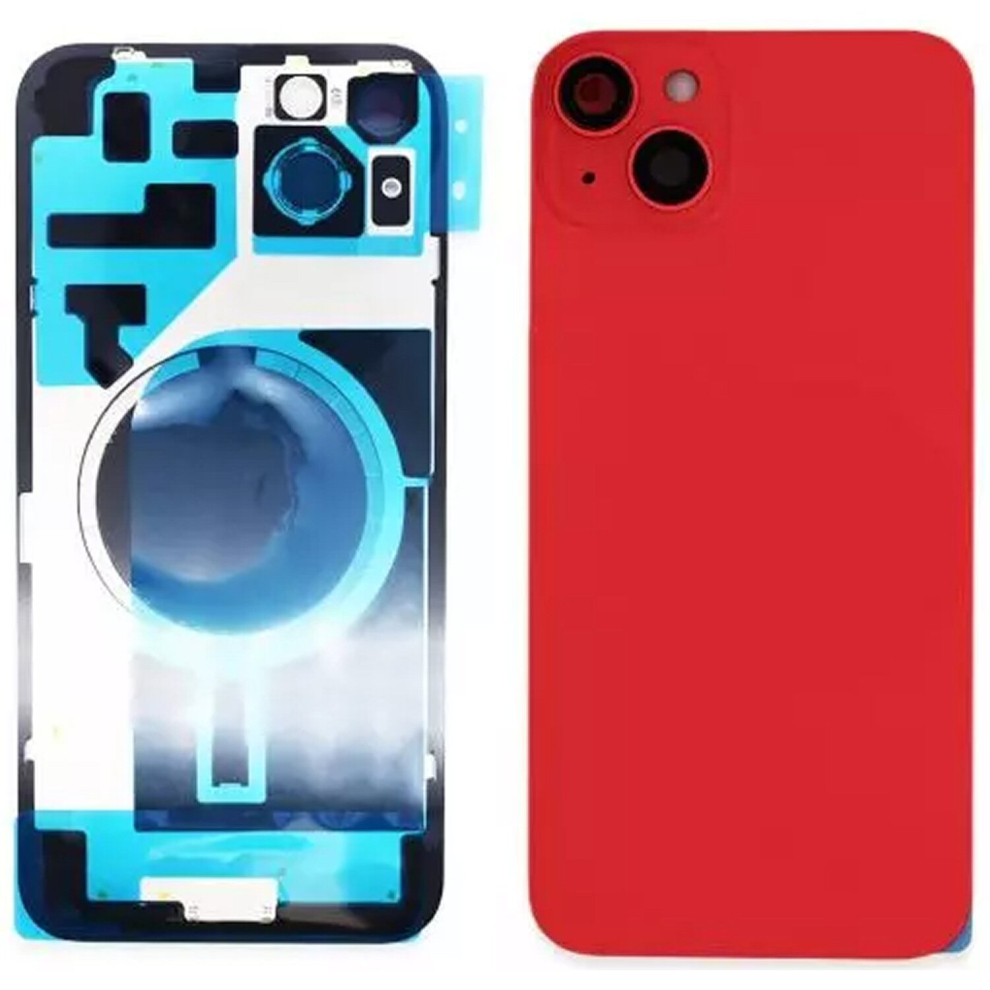 Glass Back Compatible with iPhone 14 Red Battery Door Camera Lens Bezel Magnetism Ring + Metal Plate Plain Without Logo